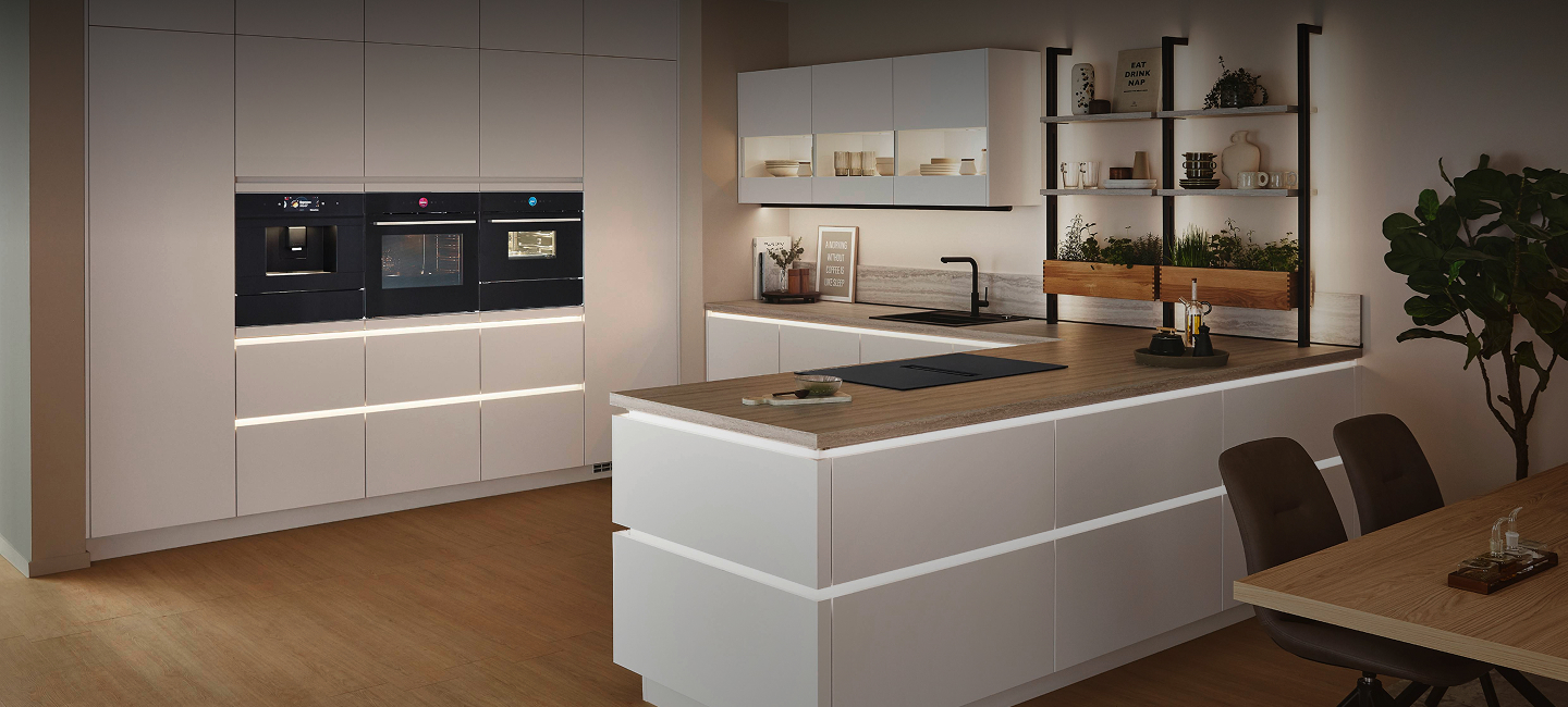 Our kitchen systems combine clean lines, refined materials, and architectural precision with flexibility in mind. This allows architects to easily integrate modern functionality with timeless visuals. From compact apartments to vast residences, every project is customisable to create a practical and inspiring place.