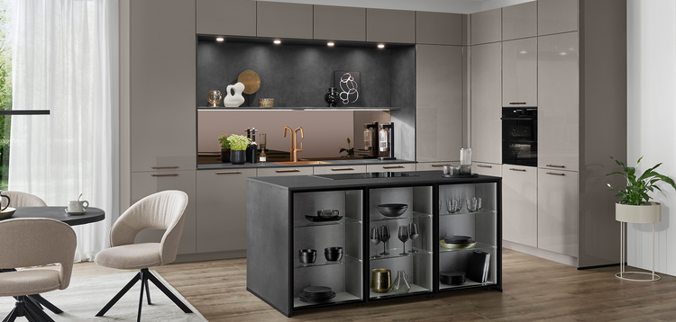 LINE One – Purist lines meet comfort! The new LINE One concept for handle-free kitchens combines the design versatility of LINE N with the practical push-to-open technology of the nBOX drawer system. The clear horizontal lines give the kitchen a calm, harmonious look, while the push-to-open feature makes drawers and pull-outs easy to open, offering additional convenience in everyday use. The kitchen range is rounded off by new Curve options for sink cabinets and organically shaped end panels, which open up a wide range of applications for bathrooms and living areas. In addition, the new vertical lighting in the recessed handles creates atmospheric accents and completes the design experience.