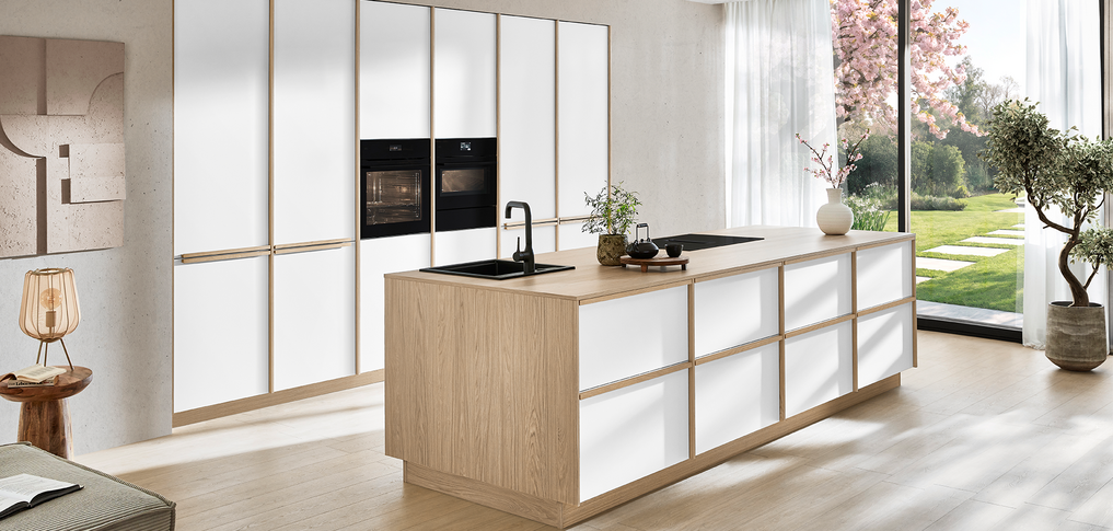 The Sakura design line combines Japanese clarity with Scandinavian cosiness and brings the trendy Japandi style into the kitchen and bathroom. Fine frames, natural materials and soft colours create a calm, timeless atmosphere with plenty of room for individual design ideas.