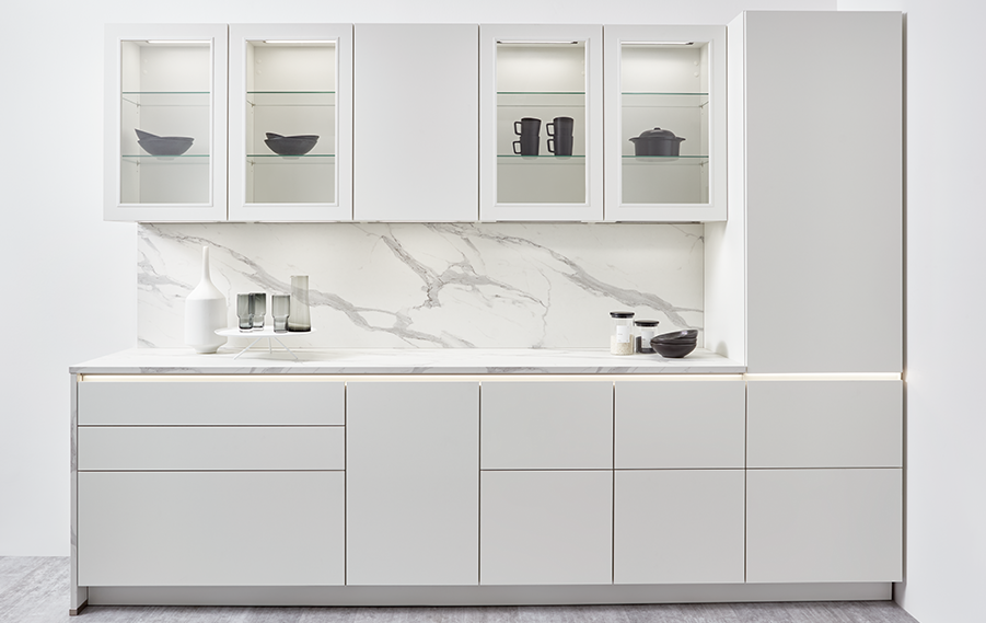 Modern kitchen design in white premium matt with LINE N - clear lines and stylish handle solution for an elegant overall look.