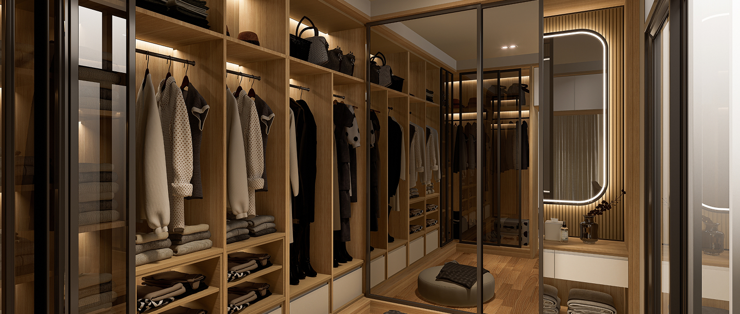 A well-designed wardrobe balances order with effortless elegance. Clean lines, soft light and well-planned storage create a gentle sense of calm. When you open the doors, everything feels settled, tidy and made for you.